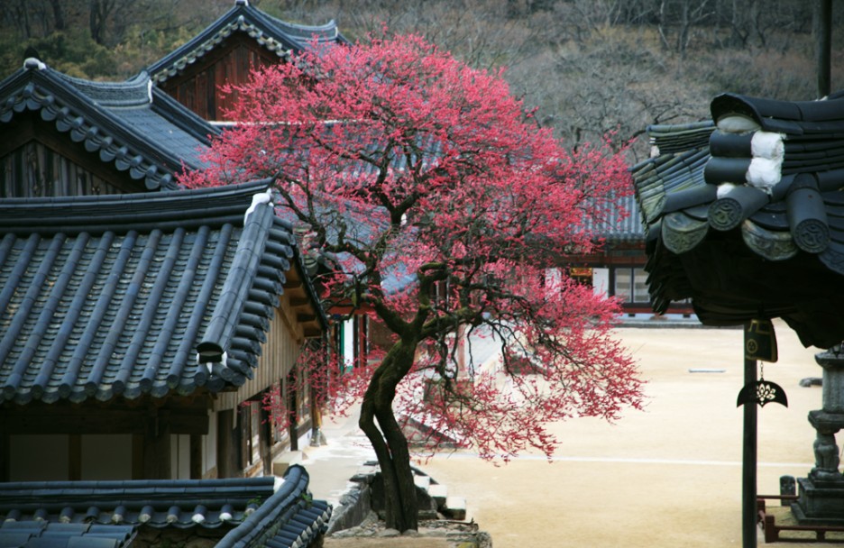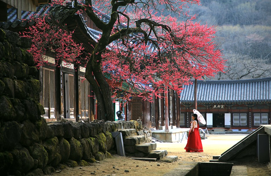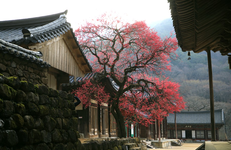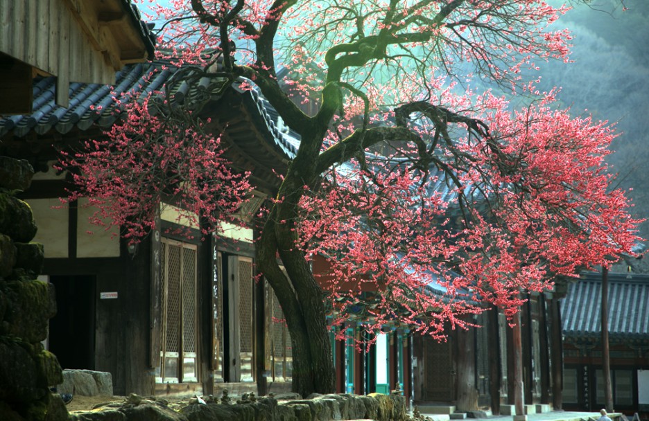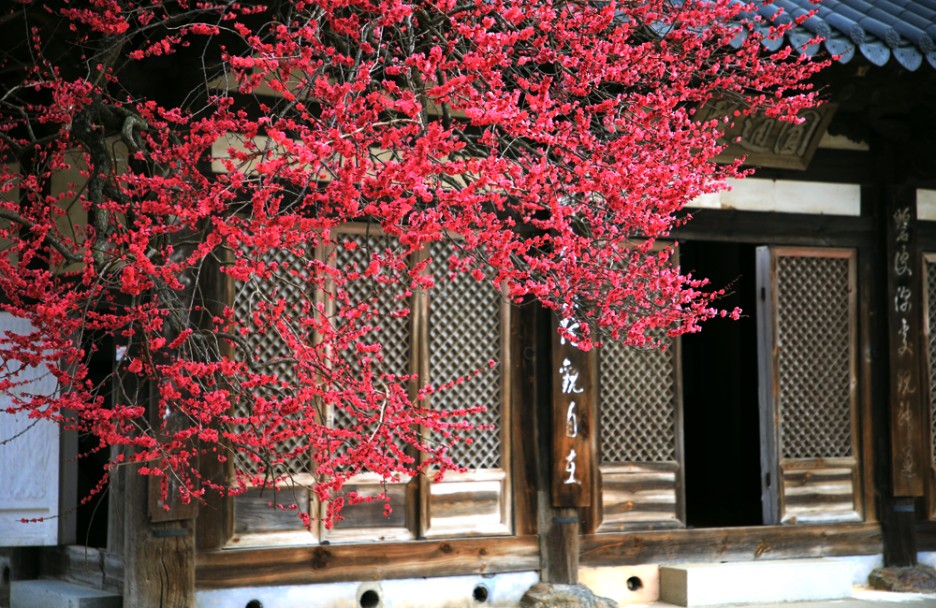 만개하였다 숙빈 최 씨와 그녀의 아들인 영인군(영조)의 후원으로 각황전을 완공한 화엄사 스님들은 고마운 마음을 담아 심었다고 전해지는 홍매화는 삼백 년 세월을 한결같이 그 자리에서 피어납니다.