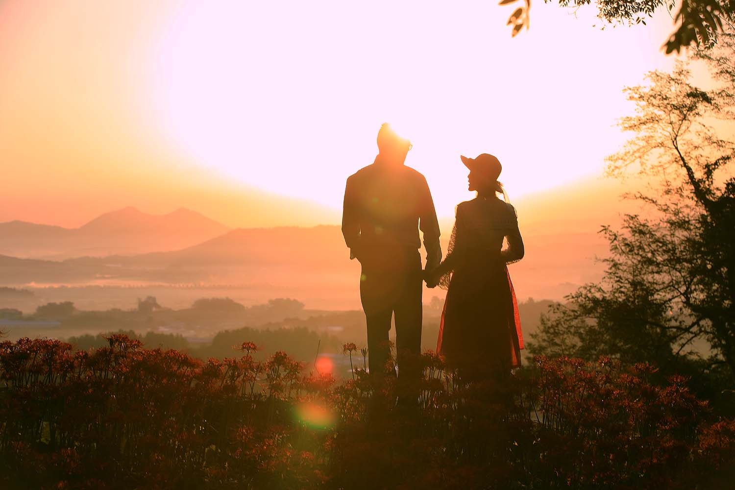 꽃무릇 꽃밭의 다정한 포즈